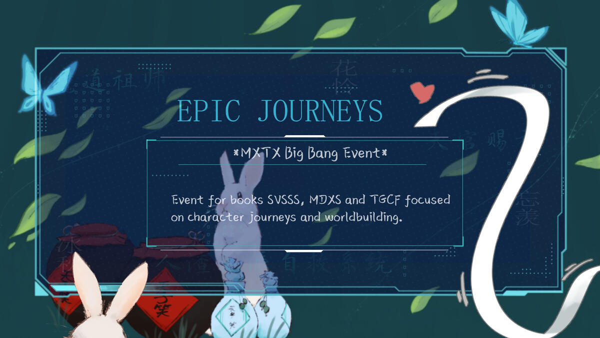 MXTX Epic Journeys Big Bang is a fandom event organized by Pocketful Of Recs on Tumblr. It is a big bang for MXTX books SVSSS, MDZS, and TGCF focused on character journeys and worldbuilding.